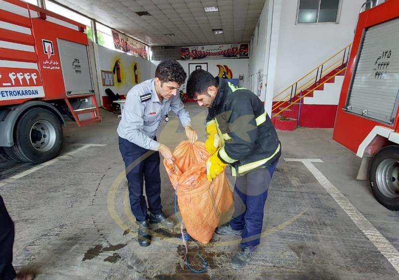 آتش نشانان پس از حضور در محل، اقدامات لازم برای نجات این حیوان را انجام دادند.