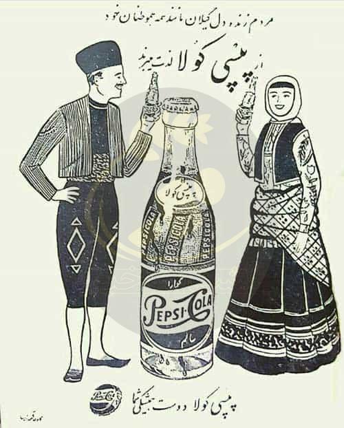 به گزارش لشت نشا خبر، پپسی کولا یکی از برندهای قدیمی نوشابه است که تصویری از تبلیغ آن با لباس محلی مردم گیلان در سال ۱۳۳۸ را در زیر مشاهده میکنید که در آن نوشته شده است: «مردم زندهدل گیلان ماننده همه هموطنان خود از پپسی کولا لذت میبرند»