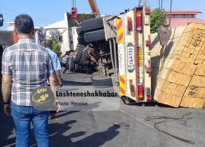 حدود ساعت ۱۵ روز یکشنبه ۲۹ خرداد ماه یک دستگاه تریلی در منطقه چهارراه لشت نشا با بار چوب نراد چپ کرد.