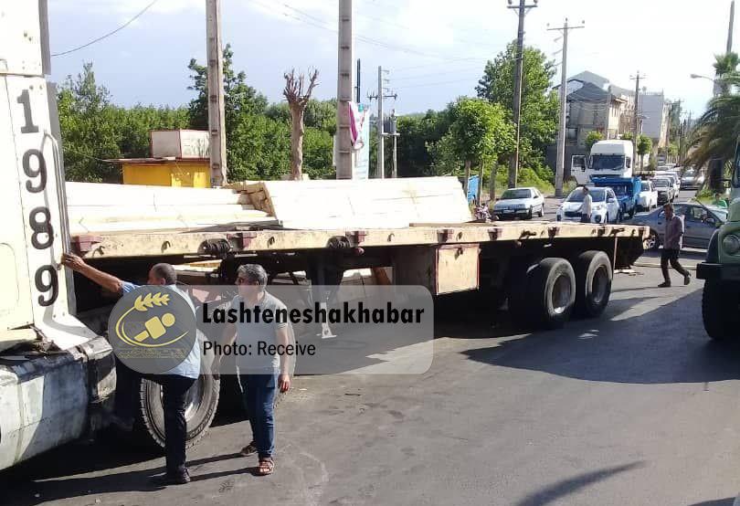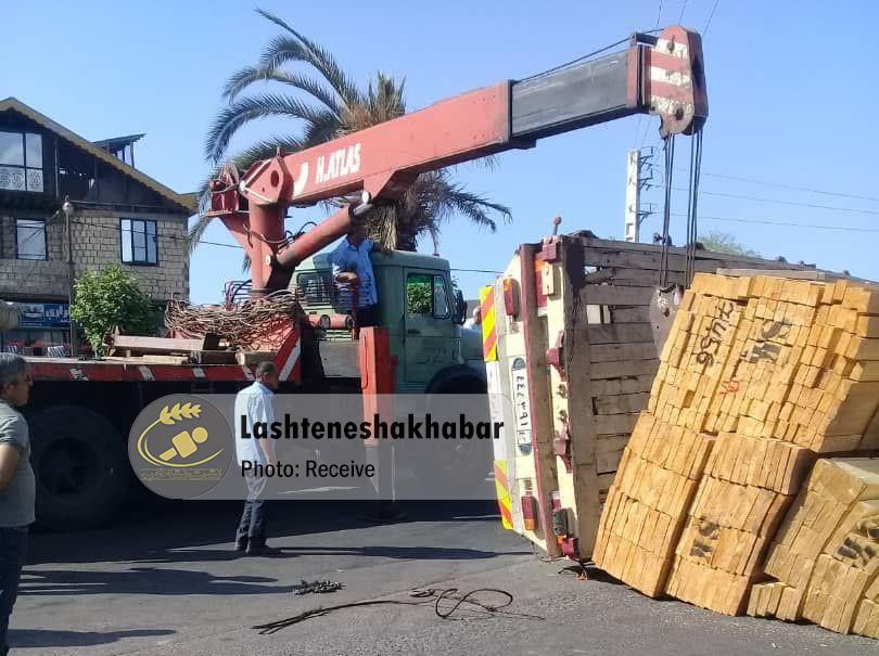 به گزارش لشت نشا خبر، حدود ساعت ۱۵ روز یکشنبه ۲۹ خرداد ماه یک دستگاه تریلی در منطقه چهارراه لشت نشا با بار چوب نراد چپ کرد.