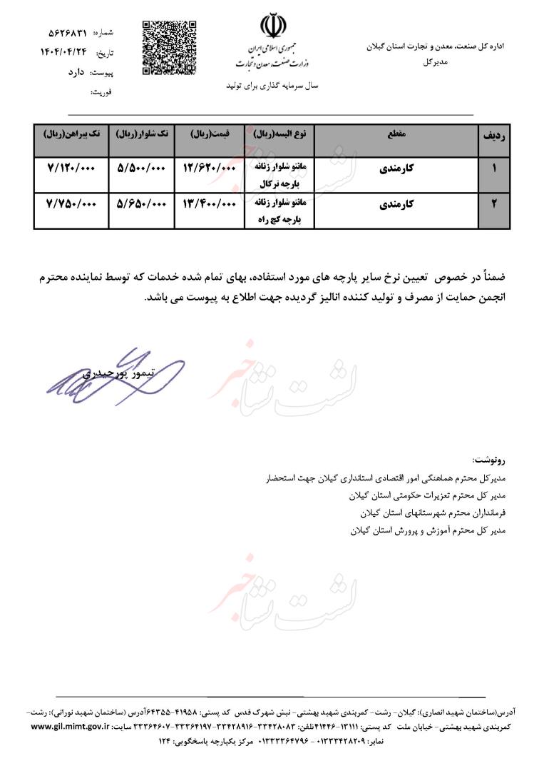 وی گفت: براساس مصوبه کارگروهِ تخصصی پوشاکِ مدارس، الزامأ تولیدیها نرخ نامه لباس را باید در ورودی کارگاه خود جهت آگاهی اولیاء حتماً نصب کنند.
