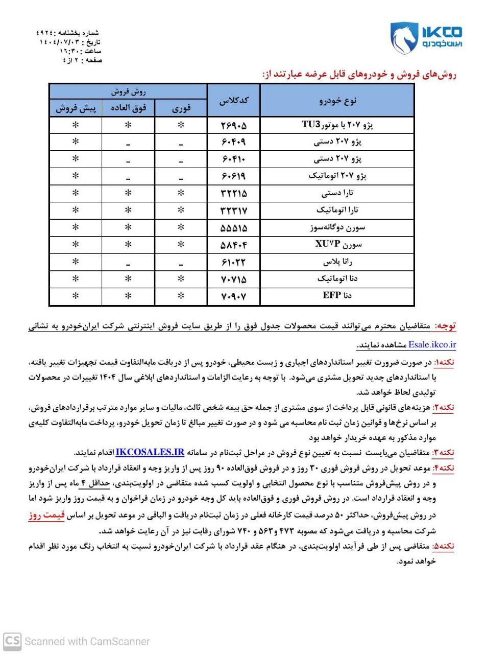 گروه صنعتی ایرانخودرو درنظر دارد، تعدادی از محصولات خود را در هشتمین دوره ثبت درخواست خرید متقاضیان به صورت فروش فوری با موعد تحویل ۳۰ روزه، فروش فوقالعاده با موعد تحویل ۹۰ روزه و پیشفروش با موعد تحویل دستکم چهار ماه پس از انعقاد قرارداد، عرضه کند.