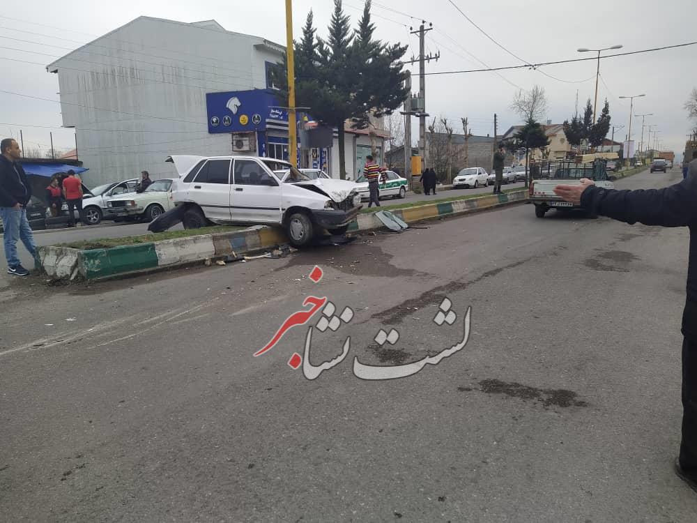 عصر امروز (شنبه 18 بهمن ماه) برخورد یک خودروی پراید با جدول کنار بلوار امام خمینی(ره) شهر لشت نشا اتفاق افتاد.